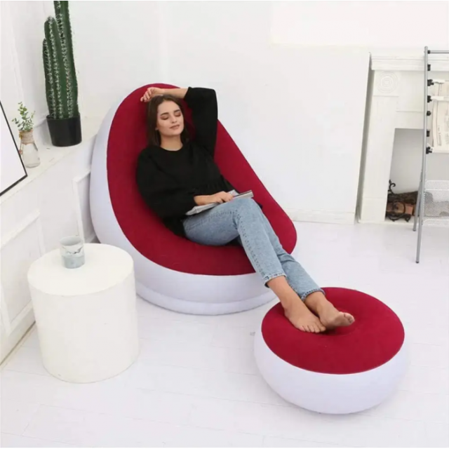 Надувное кресло диван 2в1 с пуфиком для ног A-Sofa до 150 кг Белый с красным