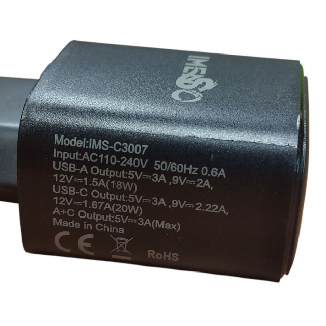 Сетевое зарядное устройство IMS-C3007 – это ваш надежный помощник для быстрой и безопасной зарядки гаджетов Благодаря выходной мощности 20 Вт и поддержке протоколов быстрой зарядки, вы сможете зарядить свой смартфон или планшет в рекордно короткие сроки.
