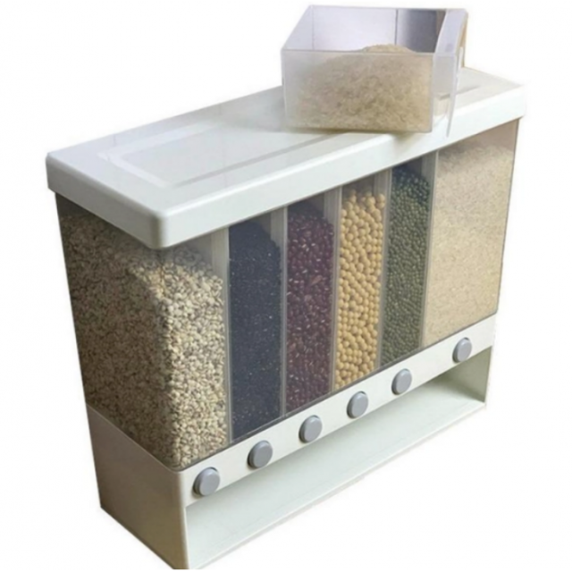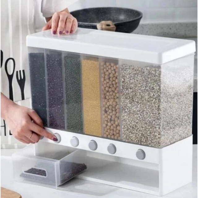 Каждое отделение позволяет хранить продукты отдельно друг от друга, что упрощает организацию и быстрый доступ к нужному ингредиенту. Используется для дозировки различных сыпучих продуктов, таких как сухие завтраки, хлопья, орехи, семена, сухофрукты, крупы и многое другое. Благодаря своей функциональности, он обеспечивает систематизацию и легкость доступа к разным продуктам, делая процесс приготовления более удобным и эффективным.