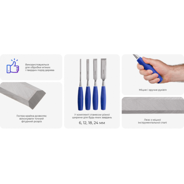 Набор стамесок 4 ед.: 6, 12, 18, 24 мм INTERTOOL HT-3501