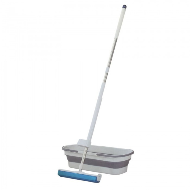 Представляем вам швабру с автоматическим отжимом и складным ведром hands-free в стильном бело-синем исполнении – революционное решение для быстрой и