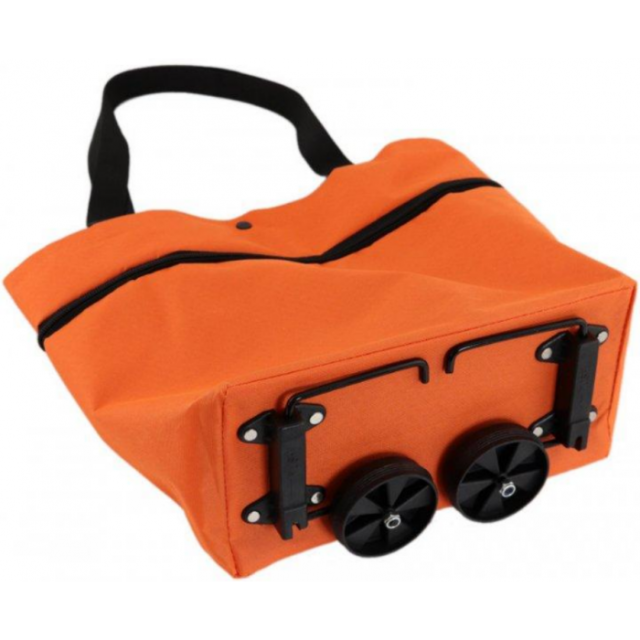 Универсальная складная портативная тележка-сумка для покупок на колесиках Оранжевая