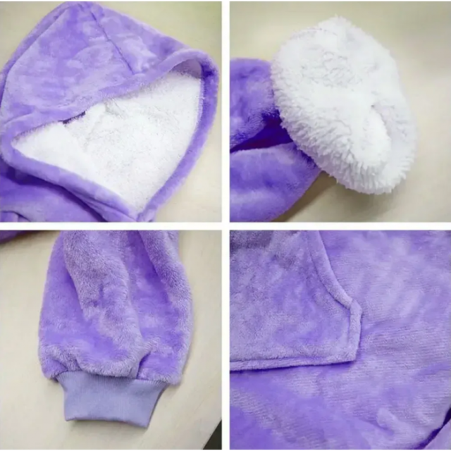 Толстовка сшита из ультра мягкого флиса, имеет один большой размер, чтобы максимально укрыться с головы до ног.