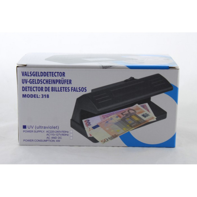 Принцип действия ультрафиолетовых проверочных аппаратов основан на идентификации люминесцентных знаков на банкноте, ценных бумагах, документах, удостоверяющих личность. В УФ свете обычная бумага отражает лучи, начинает подсвечиваться. Настоящая купюра не светится. В результате должен появиться яркий защитный знак, если на банкноте он не выделяется или светится все, должно возникнуть подозрение на подделку.