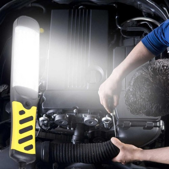 Используется в различных сферах, как при работе с механизмами, на станциях СТО, так и подсветить что-то на даче или дома. Обеспечивает полный и яркий обзор необходимых зон. Корпус светильного устройства изготовлен из качественного металла, что гарантируют прочность конструкции и долгий срок службы. Встроенный тип лампы на 96 COB светодиодов мощностью в 20W позволяет обеспечить благоприятные условия труда с соответствующей интенсивностью света. Рассчитана на длительный ремонт. Фонарь дополнен крючком, что позволяет подвешивать его на стену и прочие поверхности, направлять свет в нужную точку. На корпусе есть магнит позволяющий прикрепить фонарь к металлически поверхностям.
