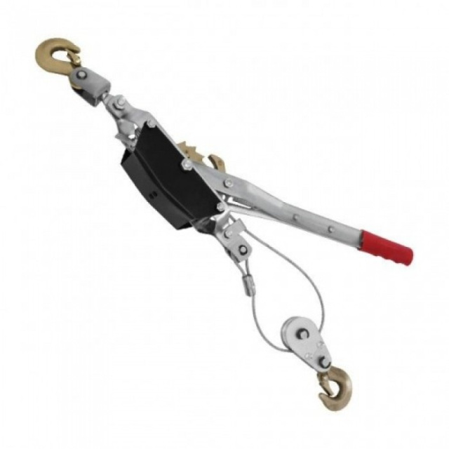 Лебедка рычажная INTERTOOL GT1442 используется для буксировки застрявшего автомобиля, выполнения складских и монтажных работ, приведения в действие разнообразных механизмов. Рычажная лебедка GT1442 имеет максимальное тяговое усилие 2 тонны. Длина троса составляет 1500 мм, а его диаметр – 4,5 мм, рабочая длина троса 0,75м.