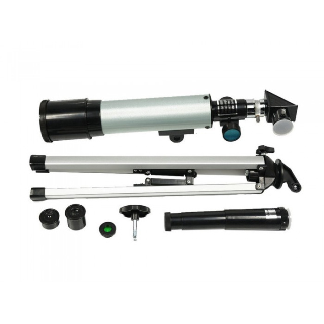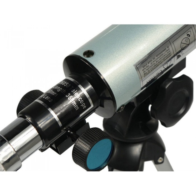- Рефракционный астрономический телескоп с диафрагмой 50 мм и фокусным расстоянием 360 мм, максимальная мощность 90x.