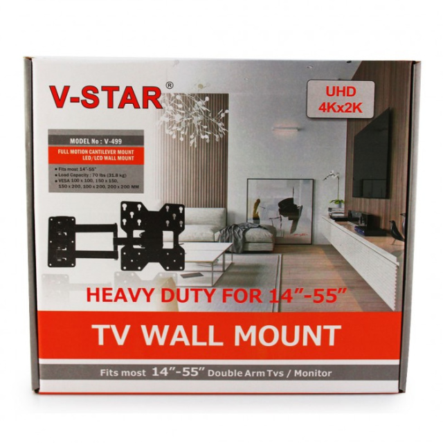 Настенный крепеж для ТВ V499 с диагональю 14-55" – это надежное и долговечное приспособление, которое прослужит вам на протяжении длительного периода. При этом цена на него отличается своей доступностью.