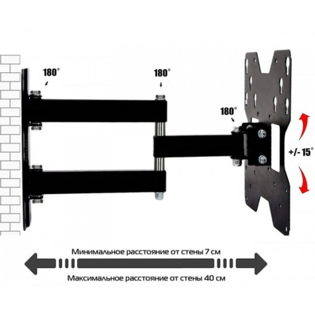 - VESA: 100х100; 150х150; 100х200; 150х200; 200х200 мм