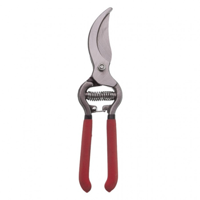 Садовый плоский секатор оснащен пружинным механизмом, открывающимся без дополнительных усилий со стороны оператора. Режет моментально, в одно нажатие.