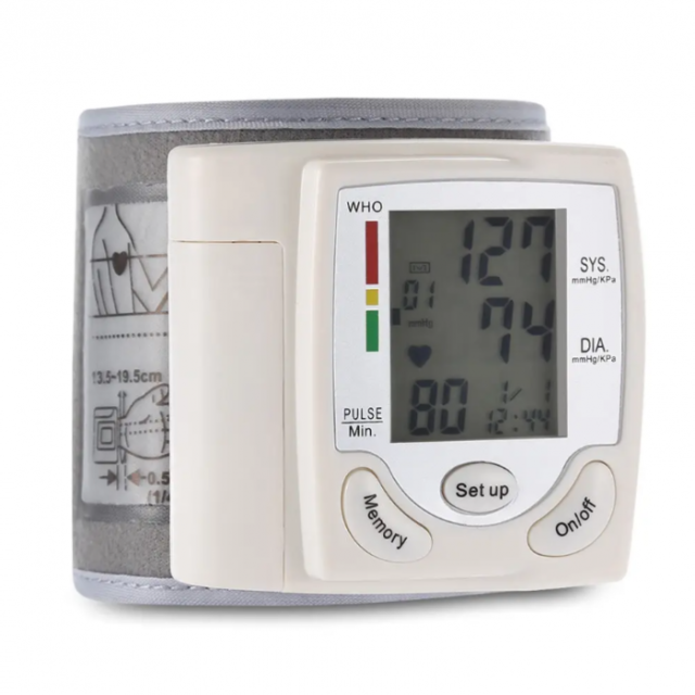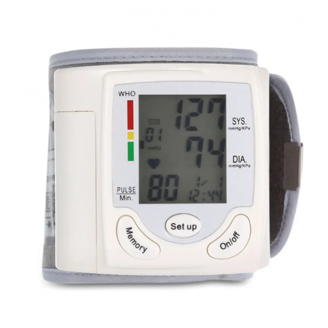 Тонометр артериального давления CK-101S на запястье компактен, легко переносим и прост в использовании. Тонометр показывает давление и частоту сердечных сокращений для получения точных результатов и показывает их на большой цифровой панели. Тонометр артериального давления CK-101S на запястье позволяет легко измерять артериальное давление в любом месте, от офиса до поездки. Тонометр, который надевается на запястье, просто необходим людям, страдающим от заболеваний, связанных с давлением. Благодаря его точным и быстрым результатам измерения можно, не теряя драгоценного времени, оказать необходимую помощь больному. В тонометре есть память на 60 измерений.