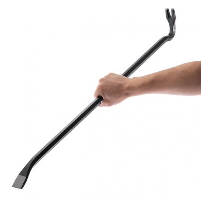 Изготовлен из высокопрочной закаленной инструментальной стали для выполнения сложных демонтажных работ. Угловой гвоздь создает опору с высоким рычагом для зацепления или подъема, а заостренный конец лома вклинивается в труднодоступные места. Плоская поверхность цвяходера позволяет убивать лом с помощью молотка.