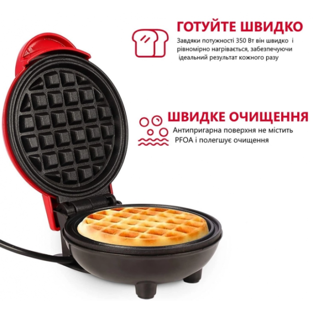 Изысканный завтрак: Хороший день начинается с красочного завтрака! Мини-вафельница с двойной поверхностью с антипригарным покрытием, равномерным кулинарным эффектом, поможет приготовить вкусный завтрак за несколько минут.