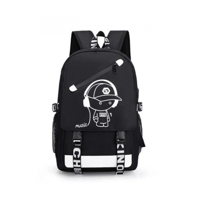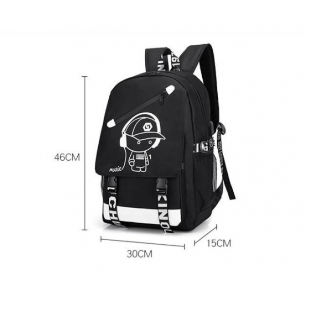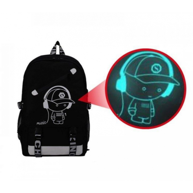 Для того чтобы рюкзак светился в темноте, нужно его подержать на ярком свете совсем недолго (5-10 минут) и он несколько часов (2-4) будет светиться в темноте. Флуоресцентные принты, нанесенные на рюкзак, являются безвредными и безопасными для Вашего здоровья. В дневное время этот рюкзак черного цвета с белым рисунком, но выключите свет - он начнет выделять флуоресцентный свет.
