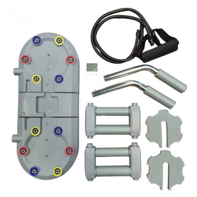 Сменные положения ручек для отжиманий, прочные ручки для стояния в планке с комфортными подлокотниками и надежные противоскользящие накладки на ножках доски делают ее максимально удобной и эффективной для ежедневных тренировок.