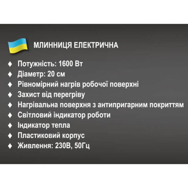 Мощность - 1600 Вт, чего достаточно для отличной прожарки блина.
