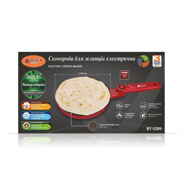 Электрическая блинница BITEK BT-5209 - отличная погружная модель блинницы для тонких блинов, простая в использовании, быстрая, безопасная в эксплуатации и делает просто великолепные блины.
