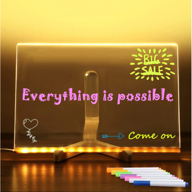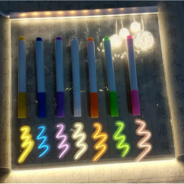 Комплектация: регулируемая подставка, акриловый дисплей, 7 маркеров для рисования, тряпочка для стирания