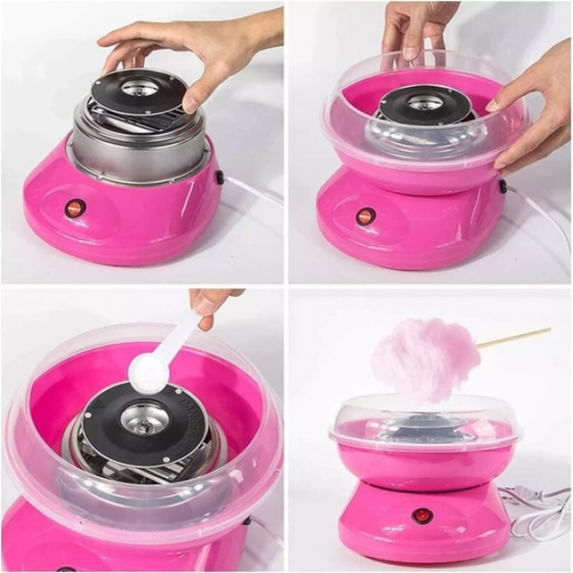 Аппарат прост в использовании и приготовлении довольно увлекательное занятие. Можно, под присмотром взрослых, позволить приготовить сладкую вату даже ребёнку. Посмотреть за тем, как образуются тонкие сахарные волокна и потом они превращаются в пушистое сладкое облако, которое тут же можно съесть. Для приготовления можно использовать даже обыкновенный сахарный песок. Если есть возможность, то вы можете приготовить из специального сахара, для сахарной ваты. ( к примеру сахарная смесь Flossine с различными вкусами)