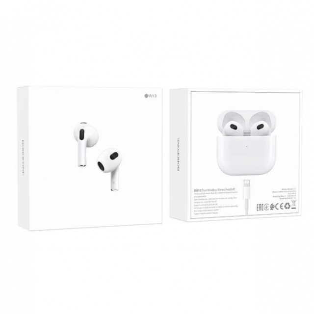 Беспроводные Bluetooth наушники BOROFONE BW13 Bluetooth TWS Белый – это настоящее музыкальное удовольствие, которое не заканчивается в конце дня. Эти беспроводные наушники оснащены мощным аккумулятором, обеспечивающим до 24 часов прослушивания любимых треков и потокового видео. Так что музыка может сопровождать вас в течение всего дня и даже дольше.