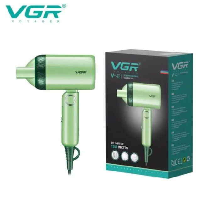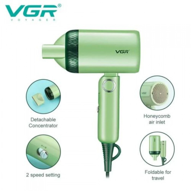 Фен VGR V-421 - это небольшой, легкий и практичный фен, который легко складывается и помещается в сумочке. Идеально подходит для использования в тренажерном зале или на тренировках, во время путешествий и отдыха. Он оснащен переключателем скорости и специальной подвесной ручкой. Его элегантный дизайн и защита от перегрева гарантируют комфорт и безопасность при использовании.