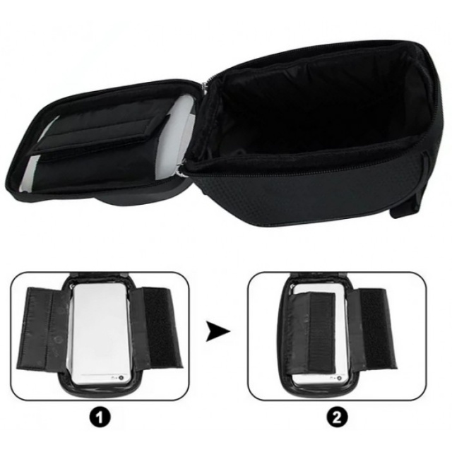 Велосипед на руль с держателем под телефон F004 является практичным и удобным аксессуаром для велосипедистов, которые хотят иметь легкий доступ к своему телефону и одновременно хранить необходимые вещи во время поездки. Она подходит для разных типов велосипедов и является надежным спутником на дороге.