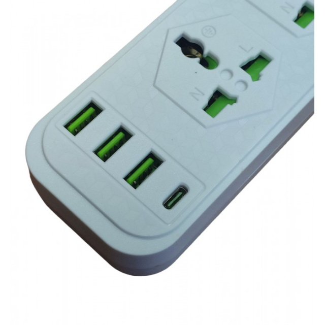 Помимо всего прочего, стоит отметить тот факт, что сетевой удлинитель на 4 розетки имеет дополнительные 3 USB порта и 1 Type-C порт, для зарядки большинства современных мобильных гаджетов силой тока до 3.4 А.