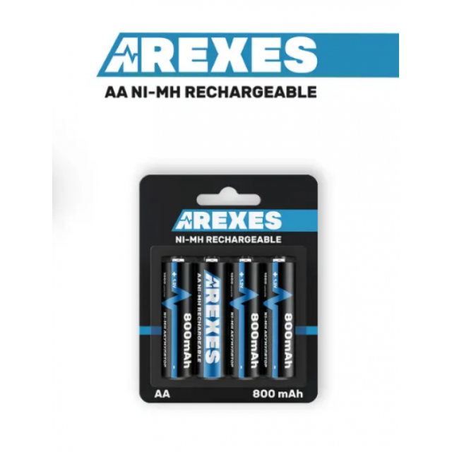 Аккумуляторы АА Arexes 800mah - высококачественные АА аккумуляторы всемирно известного немецкого бренда Arexes ёмкостью 800mah и низким саморазрядом. Аккумуляторы имеют номинальное рабочее напряжение 1.2В, а напряжение полного заряда составляет около 1.5В - как у обычных АА батареек.