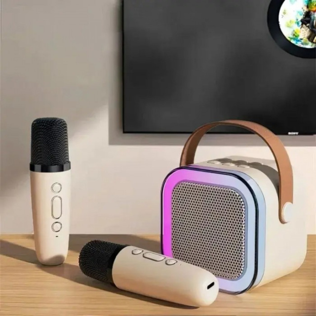 Портативная колонка с 2-мя караоке микрофонами и RGB подсветкой Winso K12 10W Bluetooth, USB, microSD, AUX, Type-C Бежевый