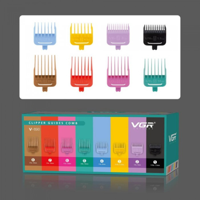 Набор насадок VGR V-890 – это комплект сменных гребней, предназначенных для использования с машинками для стрижки волос VGR. Вот полное описание и характеристики этого набора:
