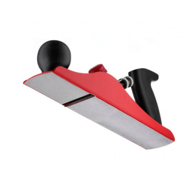 Рубанок имеет регулировочный винт для настройки глубины строгания. Также оснащен двумя ручками удобной формы для более надежного удержания инструмента в руках.