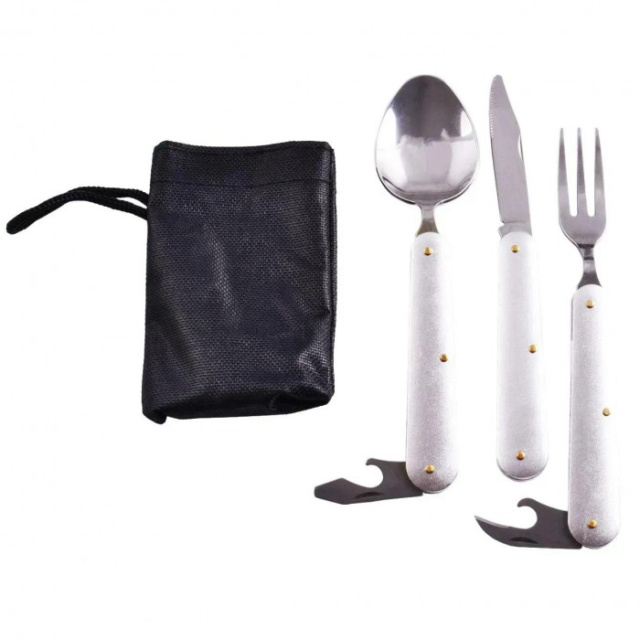 Мультитул сочетает в себе вилка, ложку, нож и открывашку, что делает его идеальным помощником в походах, на пикниках и в любых ситуациях, где требуется несколько инструментов одновременно. При необходимости, походный столовый набор легко раскладывается предоставляя доступ ко всем необходимым инструментам. Изготовлен из прочного пластика и стали, что гарантирует долговечность и надежность в использовании. Этот туристический столовый набор поможет вам всегда быть готовыми к любым задачам на свежем воздухе.