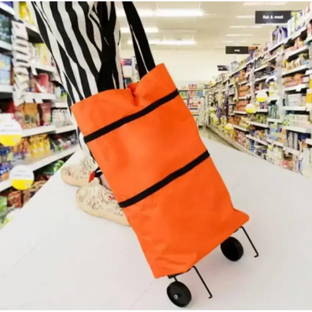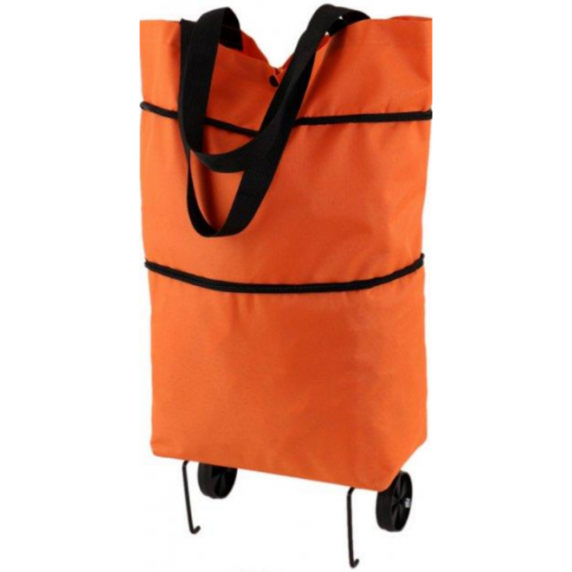 Универсальная складная портативная тележка-сумка для покупок на колесиках Оранжевая