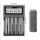 Четыре независимых канала позволяют одновременно заряжать от 1 до 4 аккумуляторов — как одинаковых, так и разных по типу, размеру и емкости. Возможность ручного выбора тока подзарядки 0.5А или 1А позволяет настроить устройство в зависимости от характеристик аккумуляторов. Имеет кнопки 1–4 (функциональные) для выбора типа аккумулятора. В течение 9 секунд после подключения к источнику питания и установке аккумулятора нажмите одну из кнопок, чтобы выбрать тип аккумулятора.